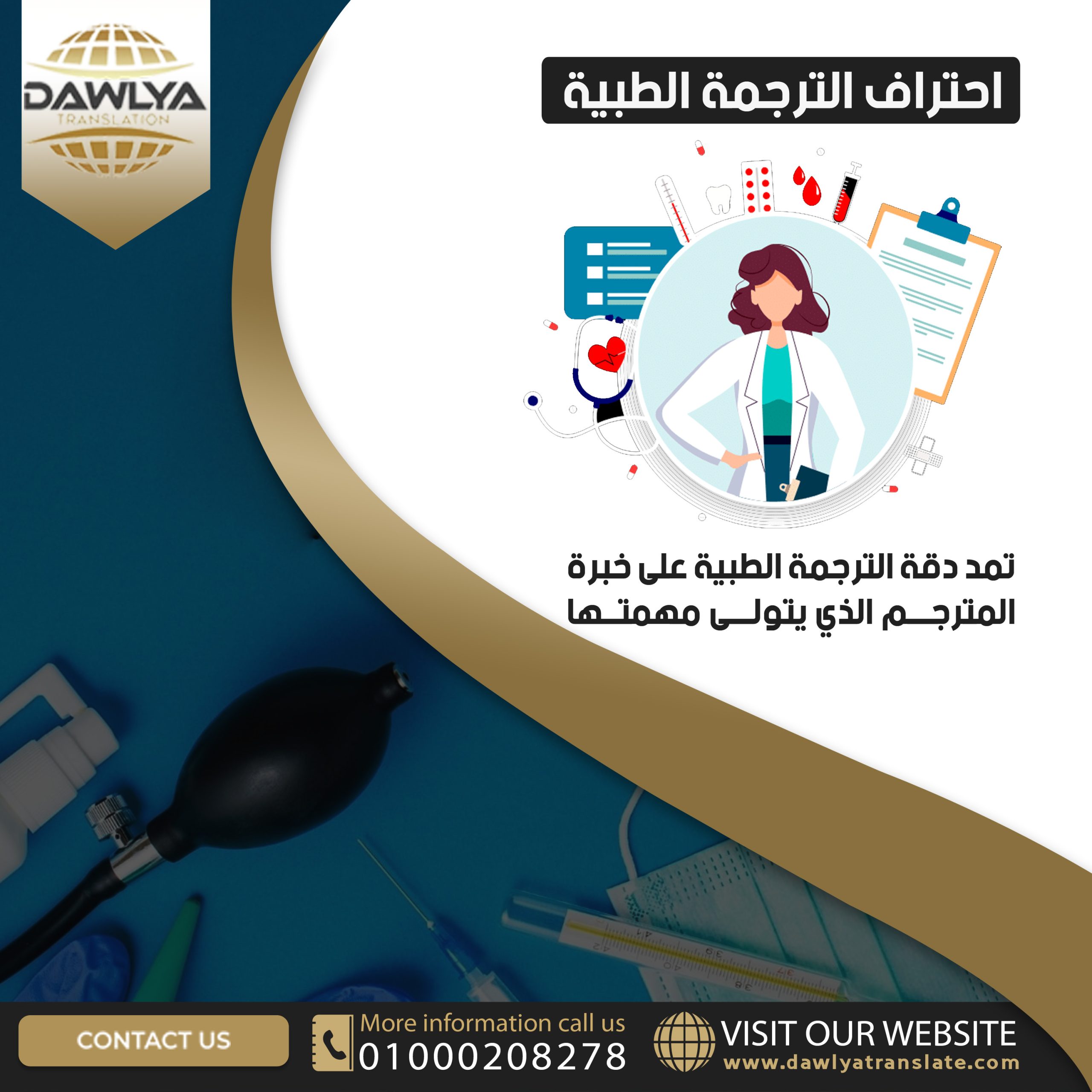 لتقديم ترجمة ذات دقة وشفافية عالية وموثوق بها أمام الجهات المختلفة من مستشفيات وعيادات طبية ومنظمات محلية أو عالمية.