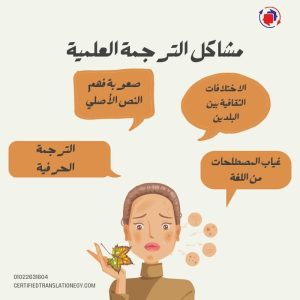 مشاكل الترجمة العلمية تتعلق دائمًا بما يواجهه المترجم خلال إتمام عملية الترجمة للأوراق والوثائق التي بحوزته، ولذلك يسعى المترجمون للدراسة والاطلاع الدائم للحصول على كل ما هو جديد للقدرة على حل تلك المشكلات وعدم تكرارها والتي من بينها ما يلي: