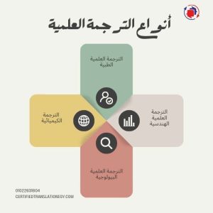 - الترجمة العلمية الطبية: تتعلق بالأبحاث الطبية والدوائية والتقارير الخاصة بالمرضى والتعليمات الموضوعة لحالتهم.